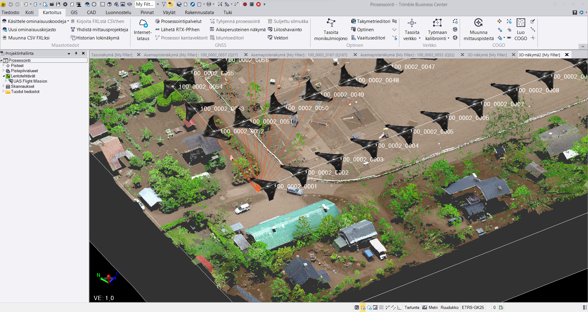 Trimble Business Center -ohjelmisto tarjoaa käyttäjälle all-in-one fotogrammetriaohjelmistoratkaisun, joka vie sinut läpi selkeän kolmivaiheisen lähestymistavan. Pääset helposti siirtymään ilmakuvausaineistojen tuonnista lopulliseen toimitukseen. Fotogrammetriamoduuli on yksi Trimble Business Centerin parhaista ominaisuuksista, sillä se vähentää tietojen käsittelyaikaa huomattavasti, mutta samalla säilyttää pistepilvien ja ortokuvatulosteiden laadun.